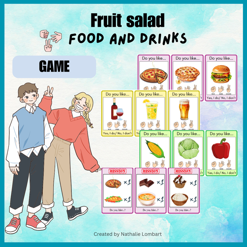 Disponible ici: https://eduki.com/fr/material/995705/fruit-salad-game-with-mission-food-and-drinks