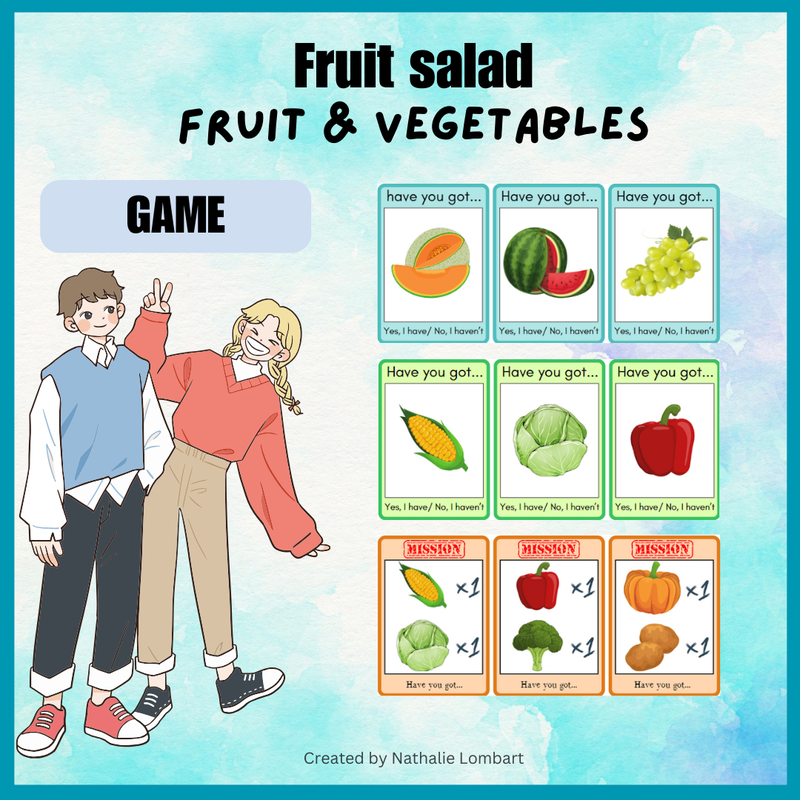 Disponible ici: https://eduki.com/fr/material/995698/fruit-salad-game-with-mission-fruit-and-vegetables