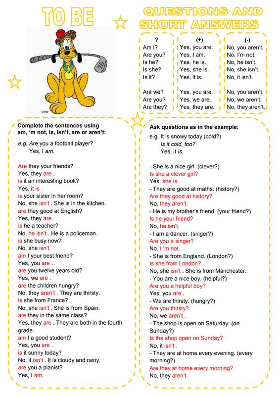 To Be Questions And Short Answers (5)