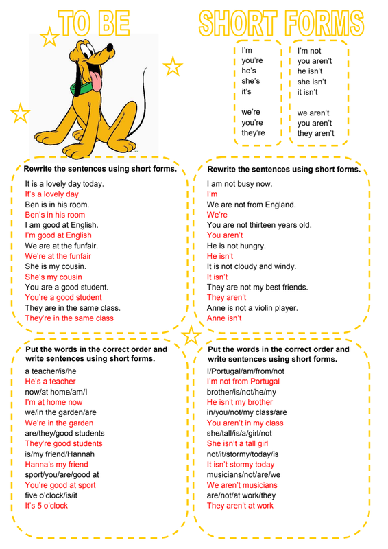 To Be Short Forms (2) Correctif