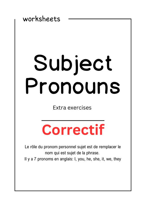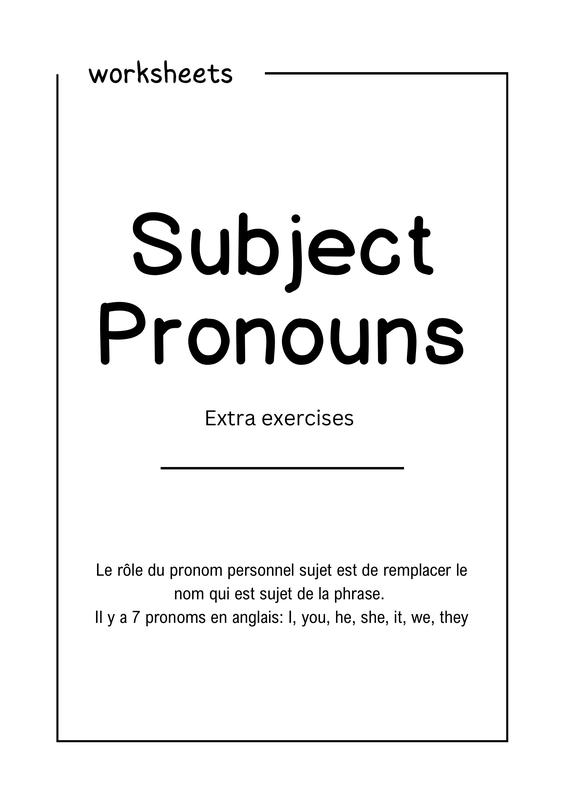 Subject Pronouns Printable Worksheets Ex. Supplémentaires