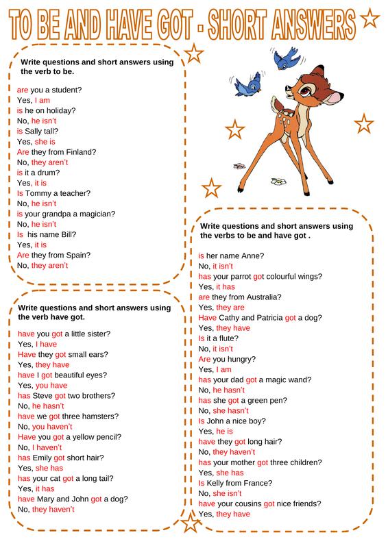 To Be + Have Got Short Answers (2) Correctif
